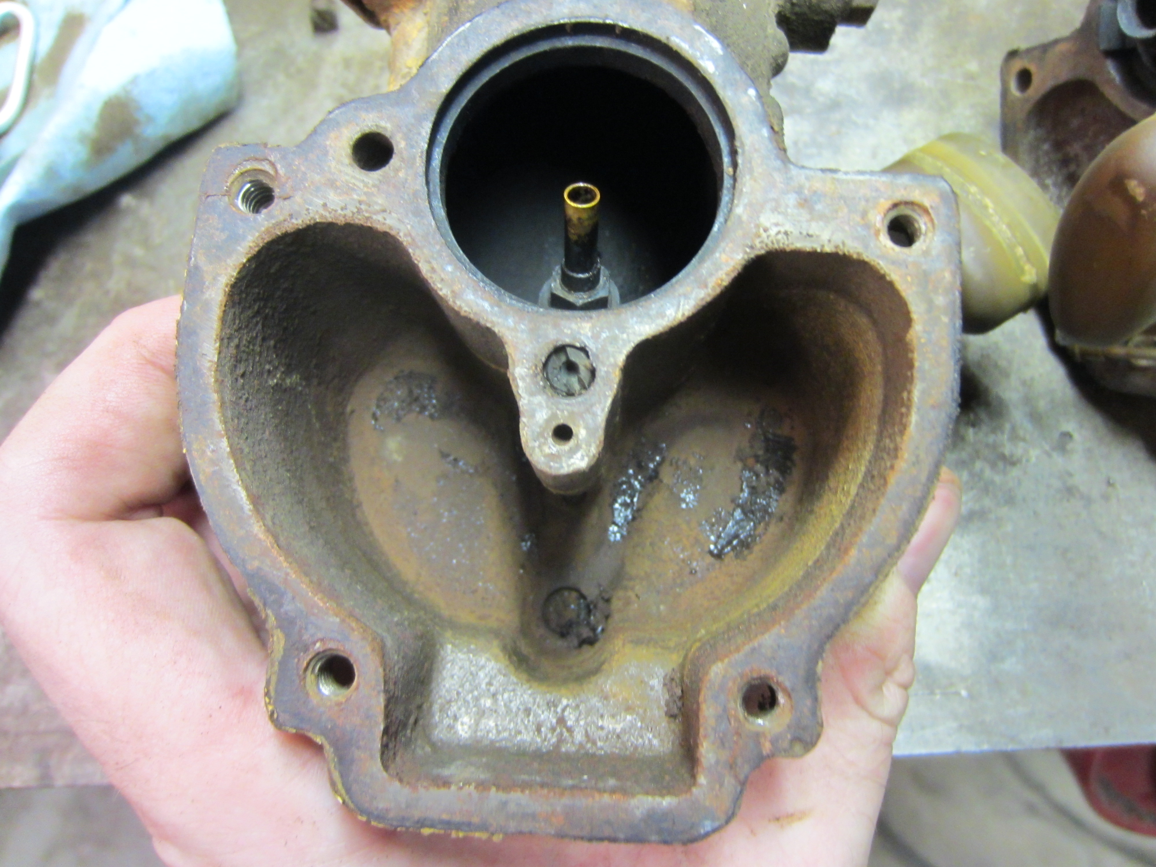 Fast forward to November 2013, and I’m back at the shop for a few days. I removed the carburetor and fuel pump assemblies, and started disassembly of both. The fuel pump was first, and it was pretty gummied up, and the diaphragm looked pretty bad. No visible holes, but pretty rotted. Next was the carburetor, it looked pretty decent, except that the needle and seat were stuck together, which would have prevented fuel from entering the float bowl. So it was a relief to find that root cause. I did my due diligence and checked all of the jets, and they all looked fine, so I re-assembled the carburetor. I wanted to test if it worked, so I also reassembled the fuel pump, knowing it wasn’t a permanent fix.