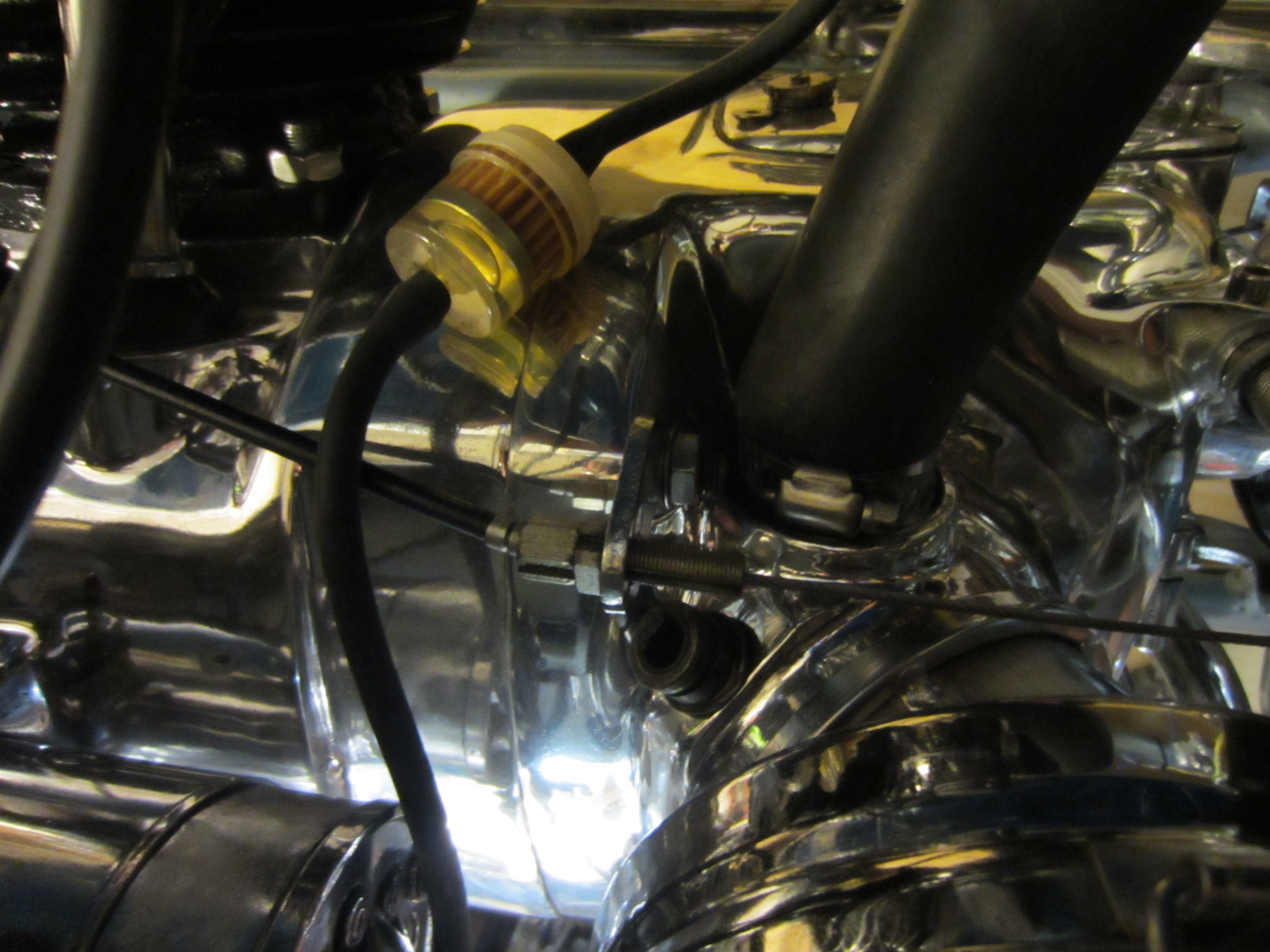 After having the sidecar for about 2 months, and not many miles on it, I started having problems with the clutch. Having the clutch fully pulled (disengaged), and idling at a stoplight, it would lurch and jerk, and want to creep foward. Revving the engine slightly helped, but I knew there was something going bad. After talking with a few other guys about it, I was pretty sure it was the clutch throw-out bearing. This is a roller bearing that allows a stationary lever to push on the rotating elements of the clutch to disengage it. All manual transmissions have a similar mechanism.