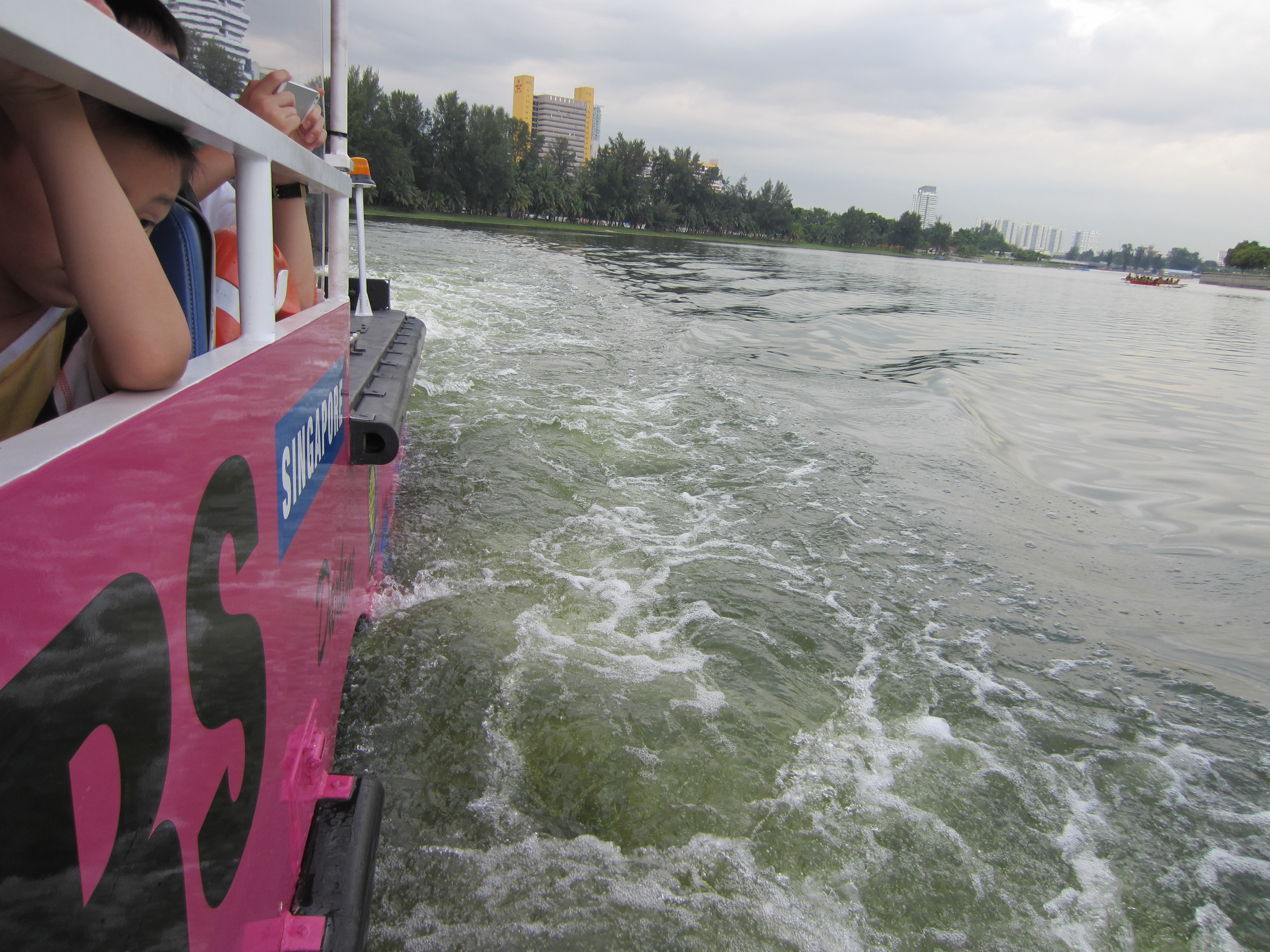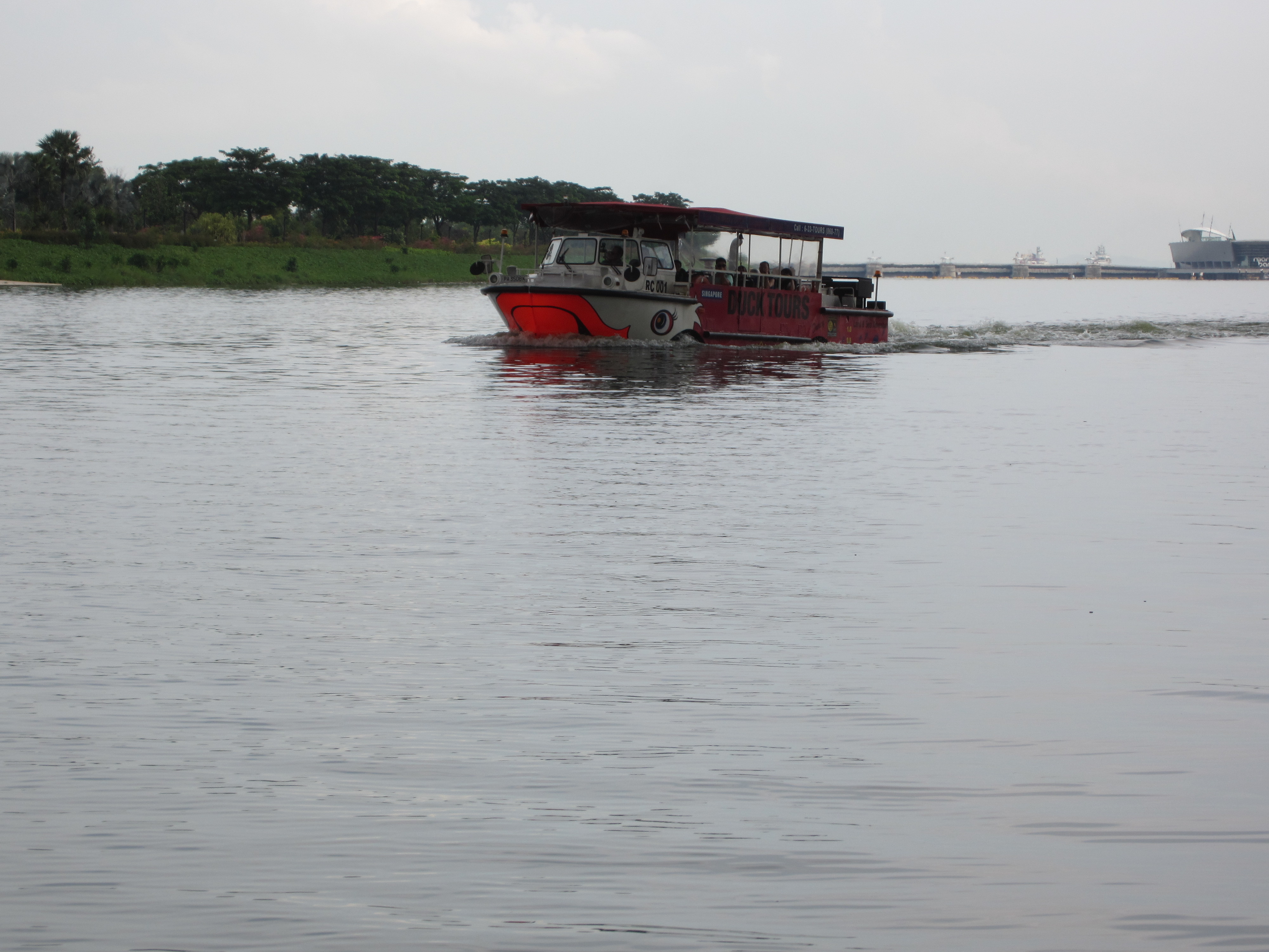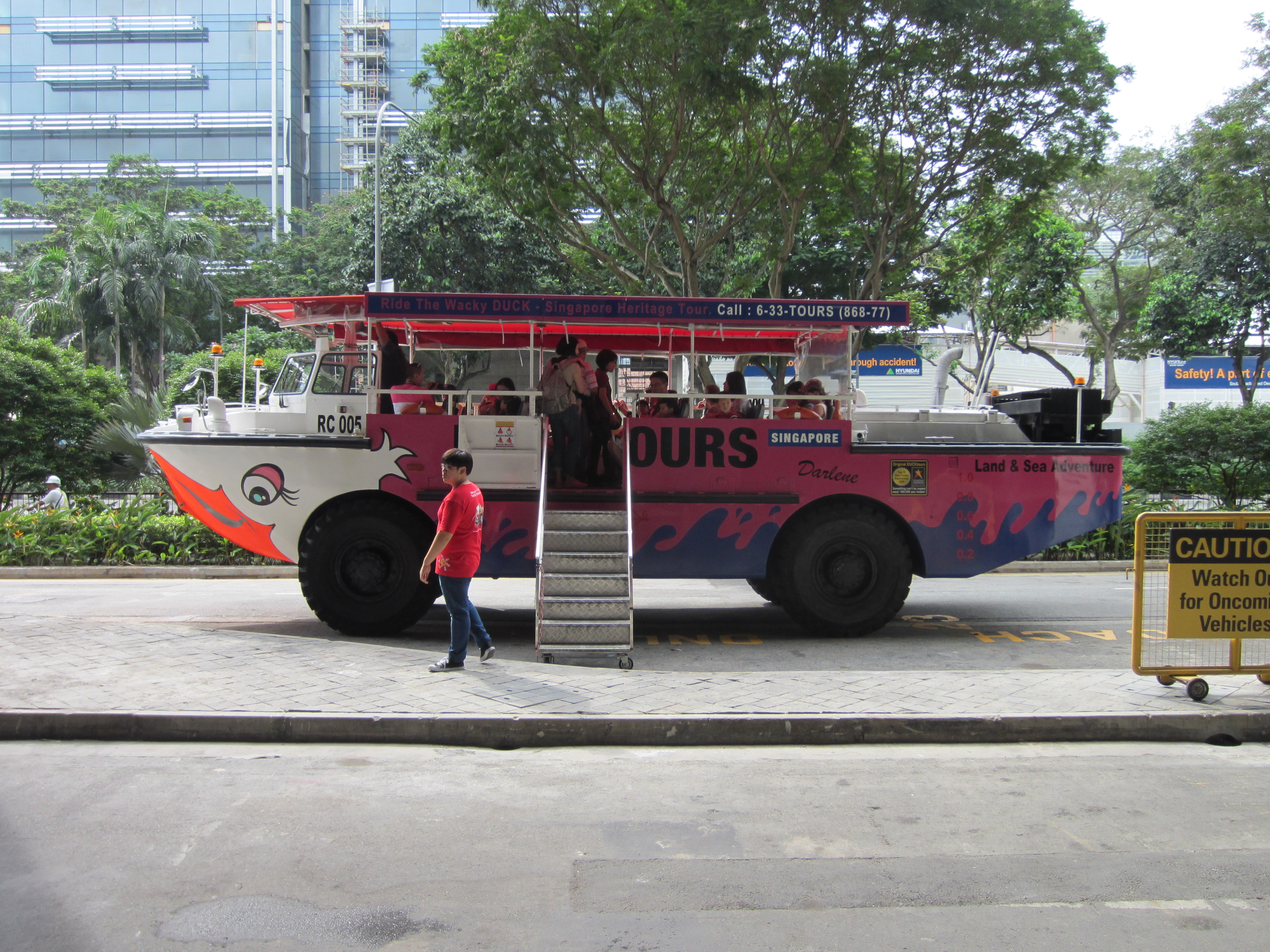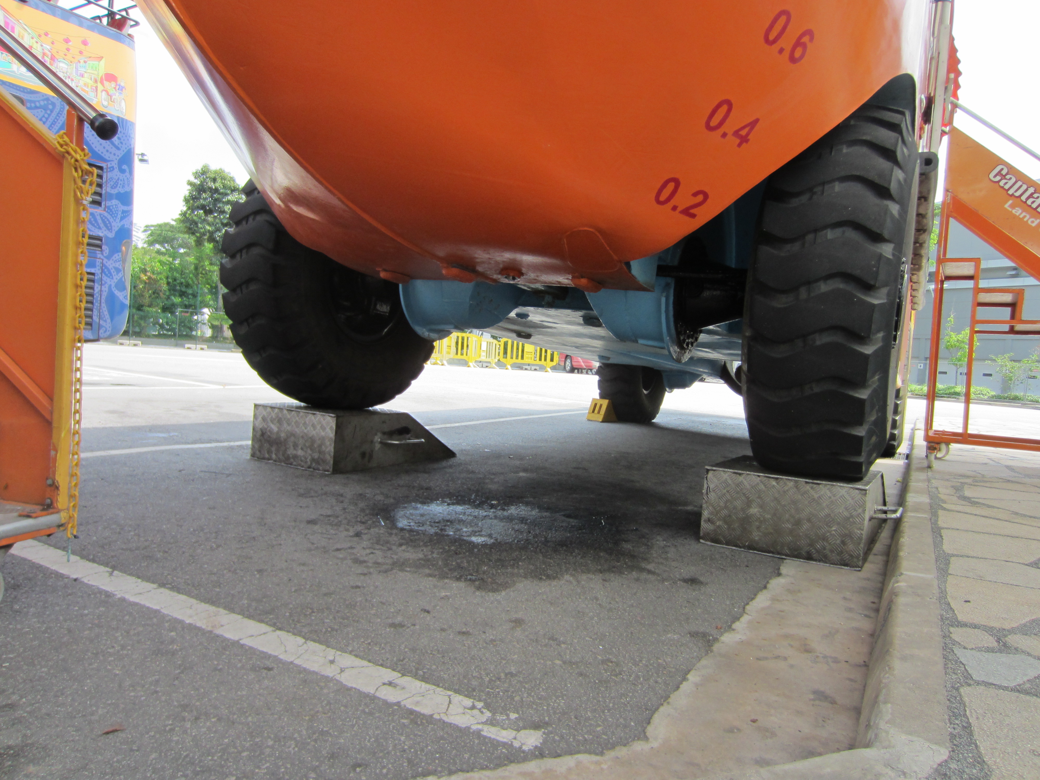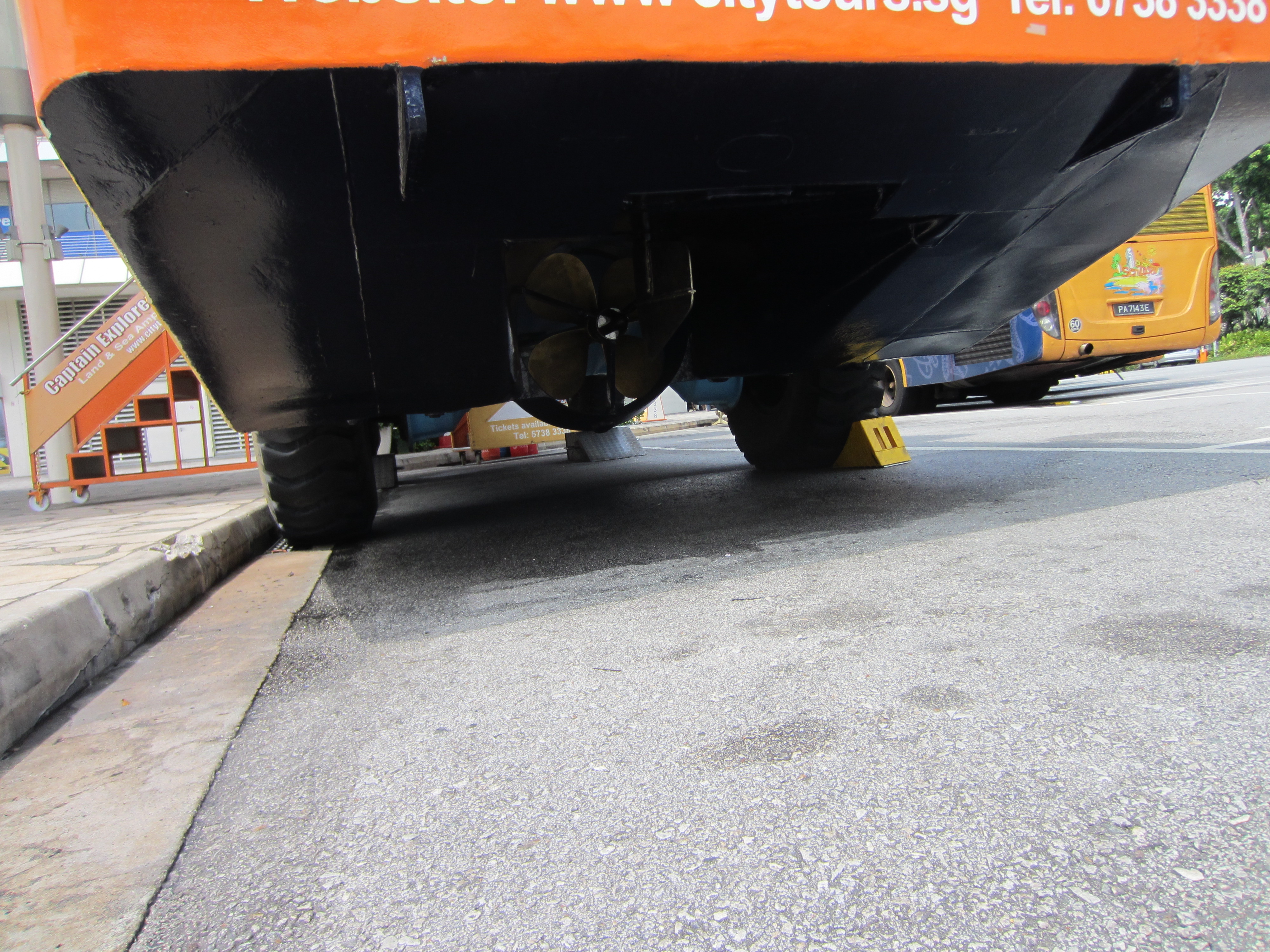 We paid to ride on one in Singapore to get a short tour of the city near the harbor, and a tour in the water in the harbor.  There really isn’t a suspension to it, just the squish of the massive tires, so it basically rides just like my payloaders.